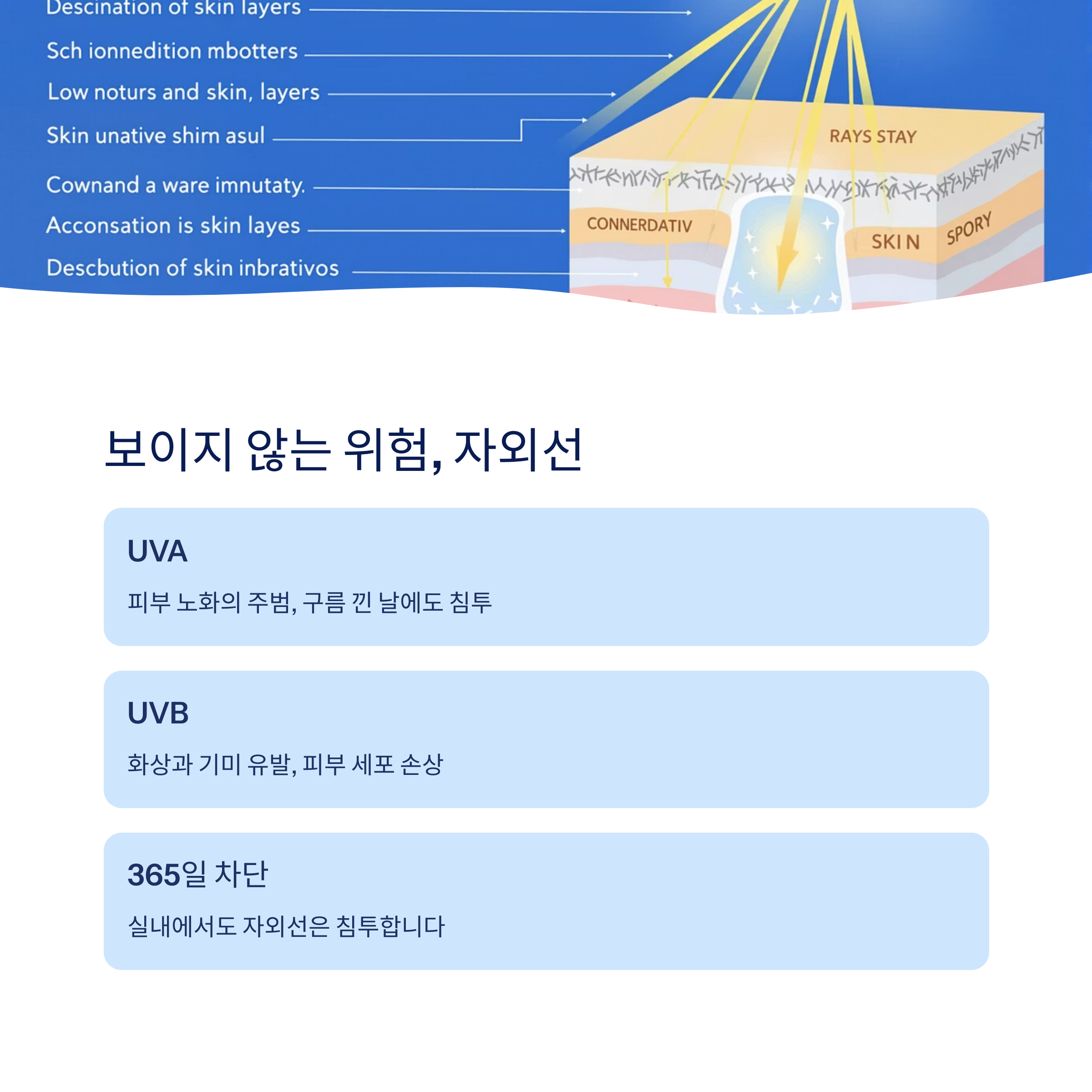 핵심: 자외선은 구름 낀 날이나 실내에서도 침투합니다. 365일 차단이 필수입니다.