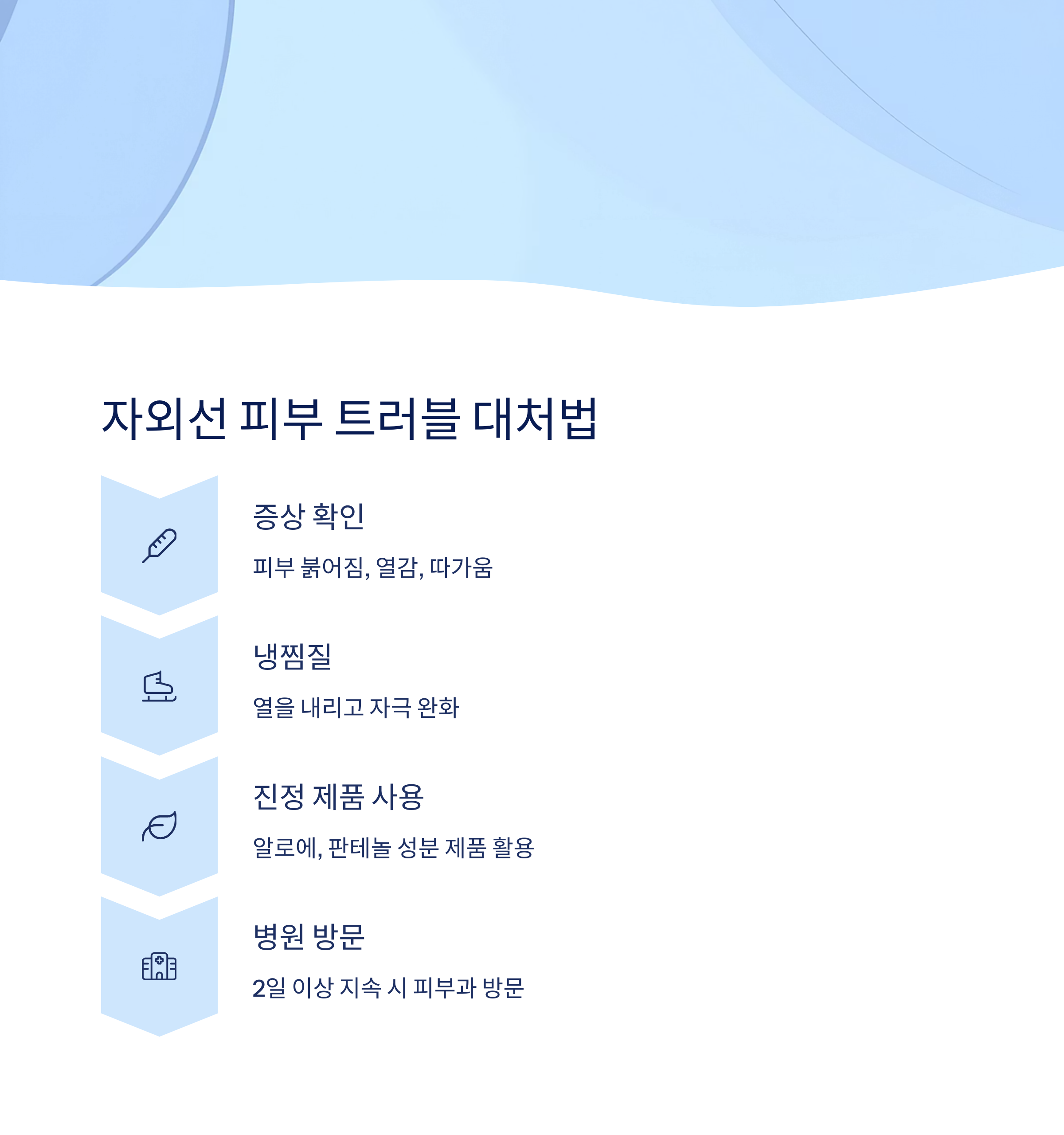 피부를 진정시켜야 하며, 이후 보습제를 충분히 발라 수분을 공급해야 합니다.