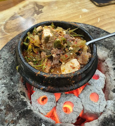 특히 숯불 위에서 끓여 먹는 된장찌개가 정말 특별했어요. 😋