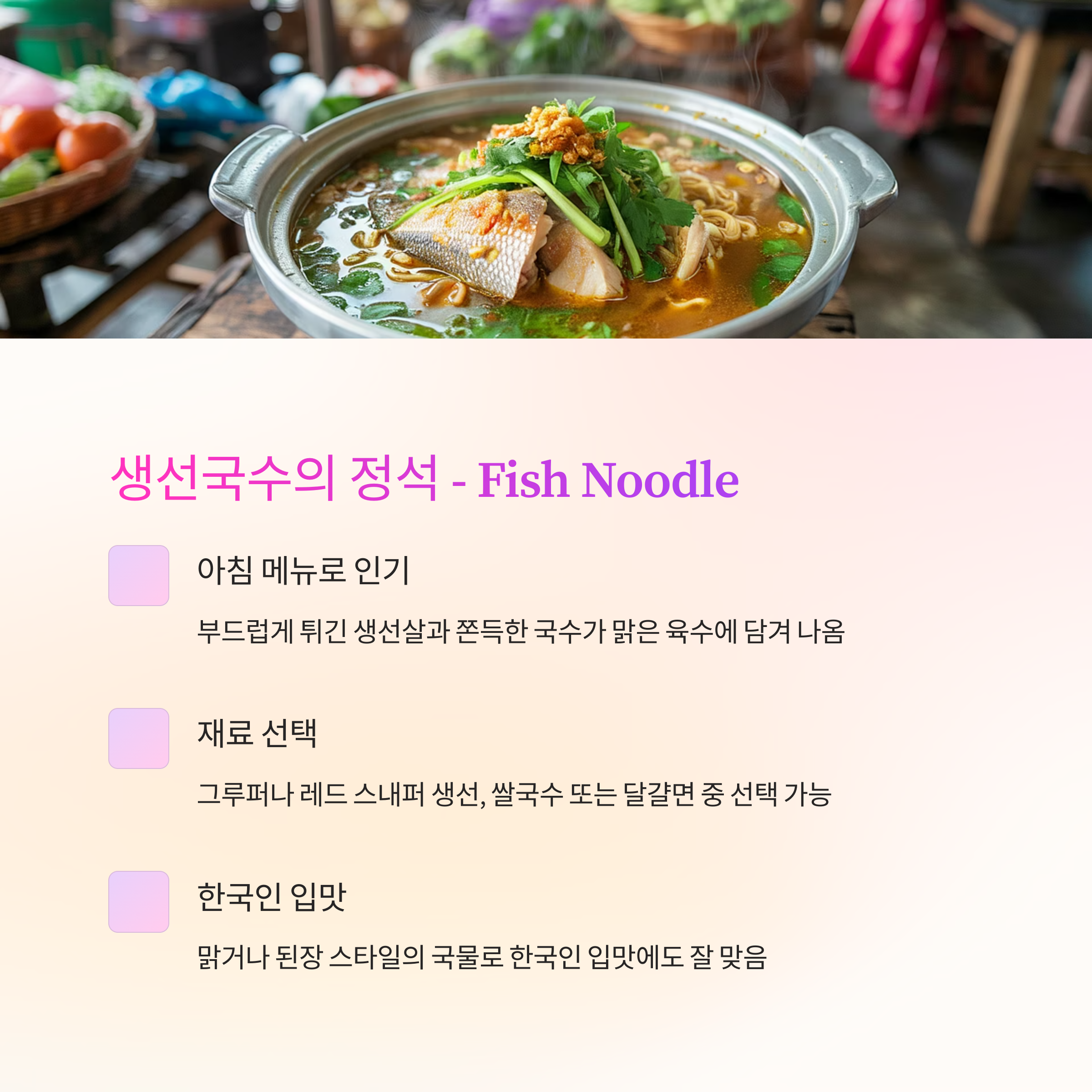 1. 생선국수의 정석 – Fish Noodle (생선 누들)