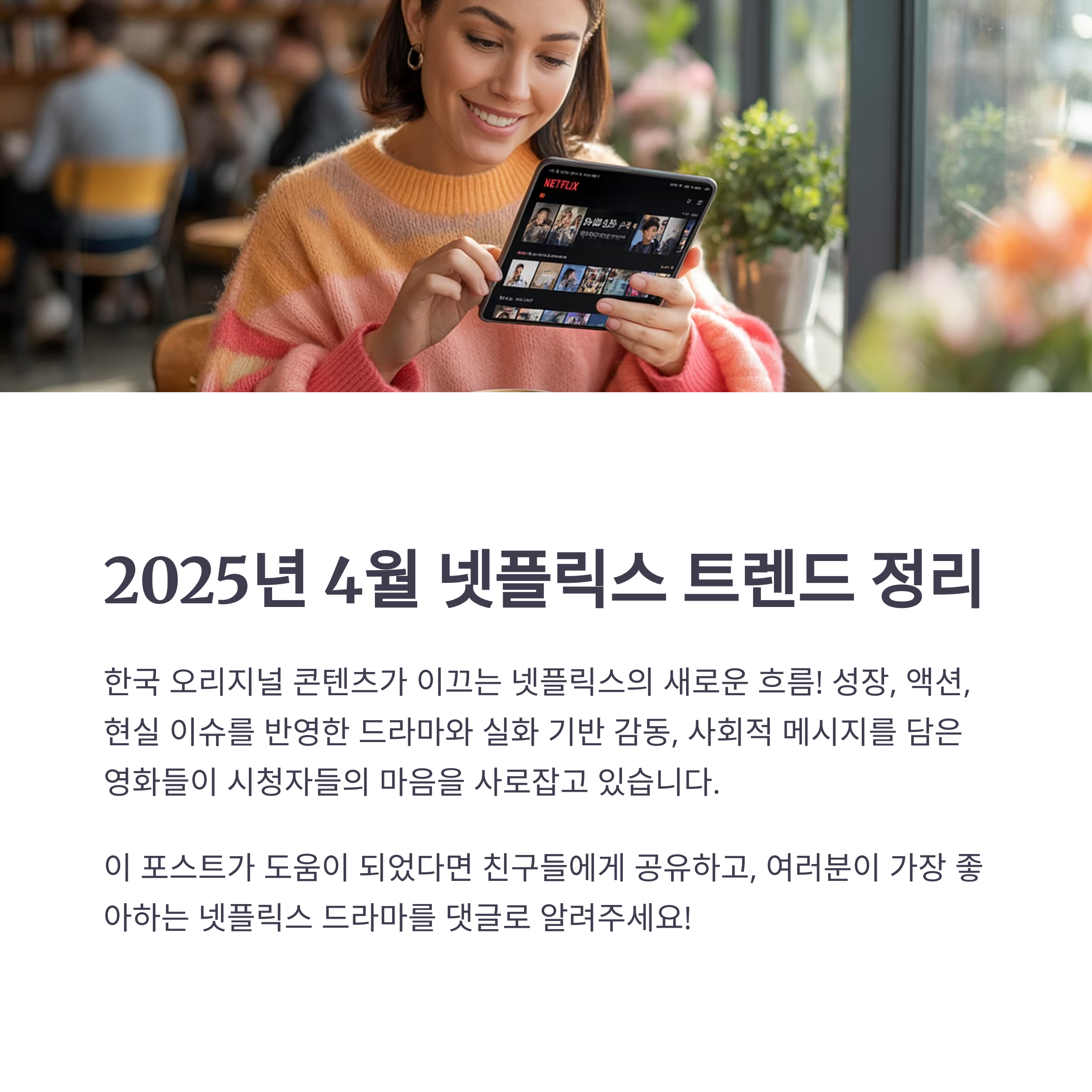 2025년 4월 넷플릭스에서는 한국 오리지널 콘텐츠가 강세를 보이며 전 세계 시청자들을 사로잡고 있습니다.
